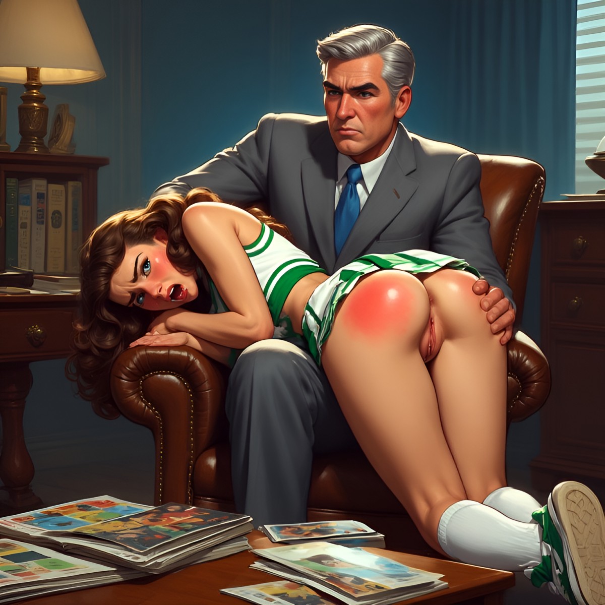 AI art of distinguished gentlemen spanking young cuties, from same artist- TheBigUlf.